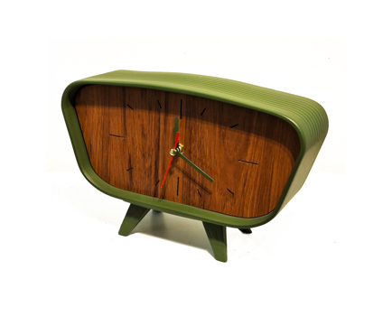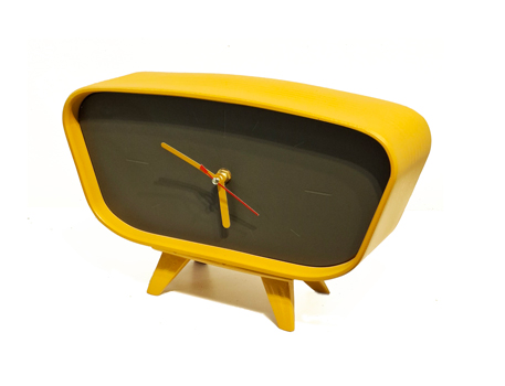 این ساعت رومیزی با طراحی الهامگرفته از فرم تلویزیونهای کلاسیک و رنگ های :خردلی، سبز، نسکافه ای ترکیبی از حس