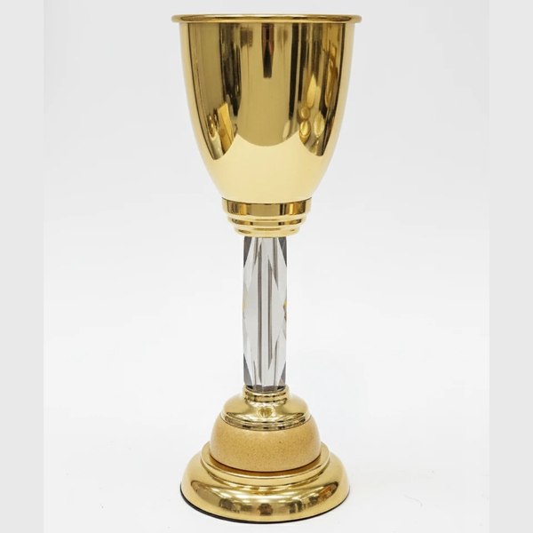 جام دکوری طلایی با پایه کریستالی یکی از مدلهای لوکس و چشمگیر کالکشن دکوری مانلیاستور است.