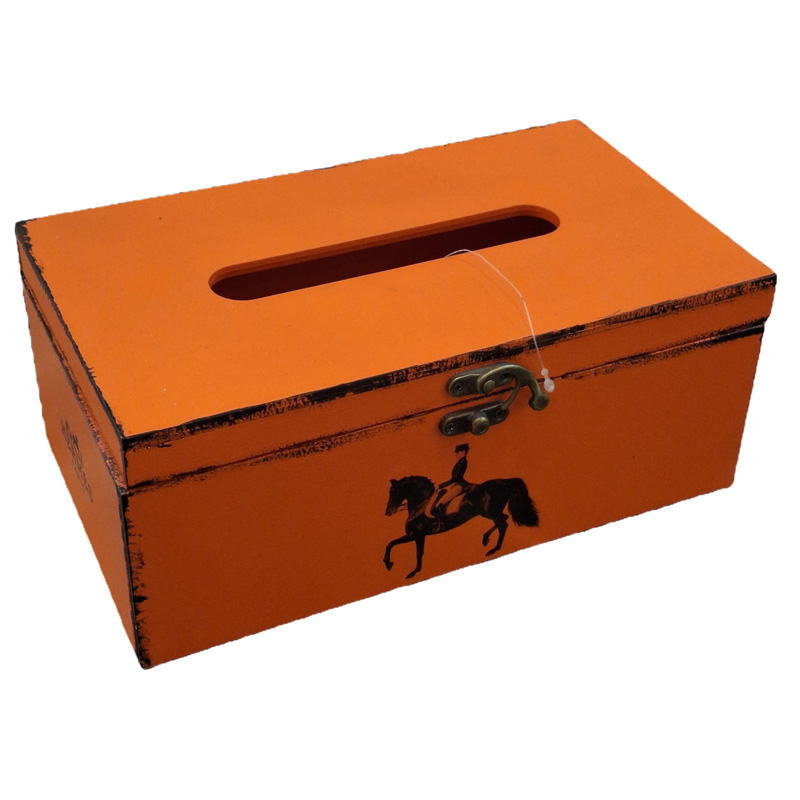 جعبه دستمال کاغذی نارنجی دکوری طرح هرمس با قفل فلزی