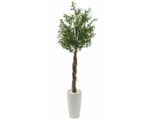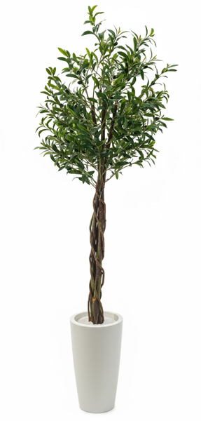 درختچه زیتون تنه بافته گلدان استوانهای سفید