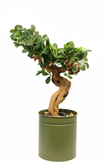درختچه زیتون تنه بافته گلدان استوانهای سفید