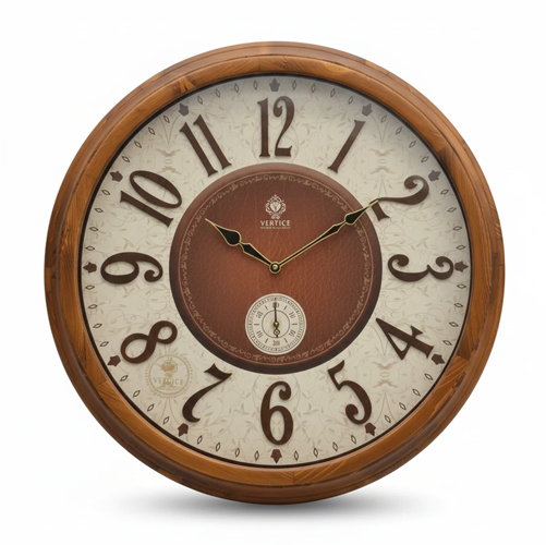 ساعت دیواری تک موتور ورتیک قطر ۶۰ سانتیمتر انتخابی ایدهآل برای افرادیست که به طراحی کلاسیک اروپایی با ابعاد متعادلتر علاقه دارند. قاب طرح چوب گرم در کنار صفحه کرم با جزئیات ظریف و اعداد خاص و خوانا، جلوهای شیک و اصیل به فضا میبخشد.