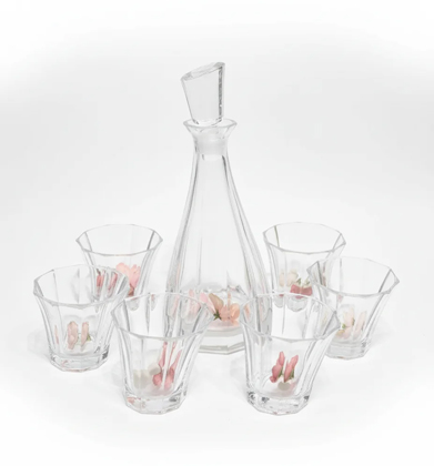 یک سرویس شیشهای شفاف با طراحی زاویهدار (اسکوار) که جلوهای مدرن، ظریف و مینیمال به سرو نوشیدنیها میبخشد.