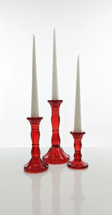 این ست شیک و جذاب شمعدانهای شیشهای قرمز رنگ، گزینهای بینظیر برای تزئینات منزل و محیطهای رسمی است. با طراحی ظریف و رنگ برجسته قرمز، این شمعدانها قادرند فضایی لوکس و دلنشین در اتاق نشیمن، میز غذاخوری یا دکوراسیون مراسمات خاص ایجاد کنند.