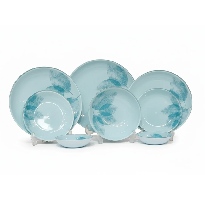 سرویس غذاخوری ۶ نفره دِمدستی ۲۵ پارچه طرح برگ سبز آبی آنتی شوک کد 202