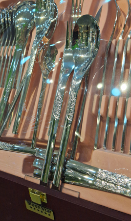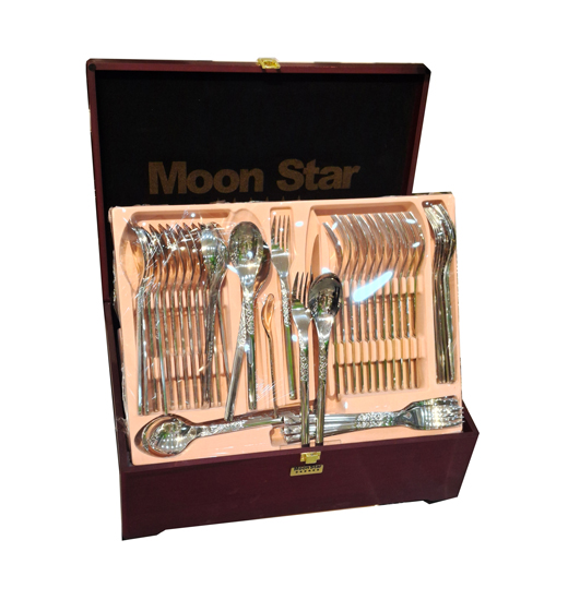 سرویس قاشق و چنگال جعبه ای 18 نفره وارداتی نقره ای مون استار