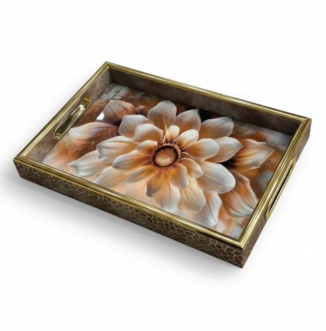 سینی دکوراتیو قاب طلایی طرح گل مات کوچک