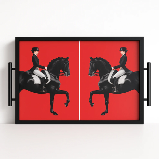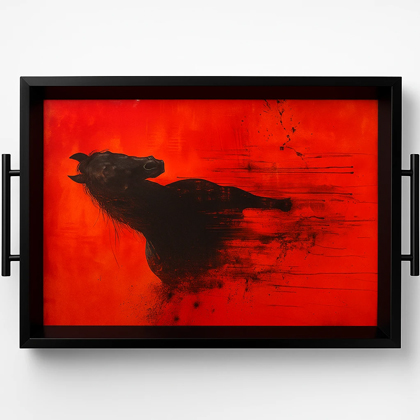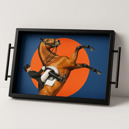 سینی دکوراتیو قاب مشکی طرح اسب 43 سانت