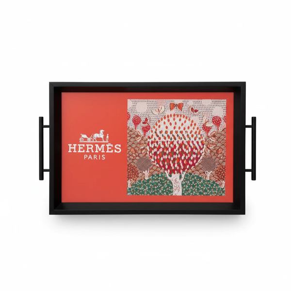 این سینی دکوراتیو هرمساستایل با طرح باغ نارنجی، برگرفته از هنر تصویرگری لوکس و پترنهای نمادین سبک فرانسوی است.