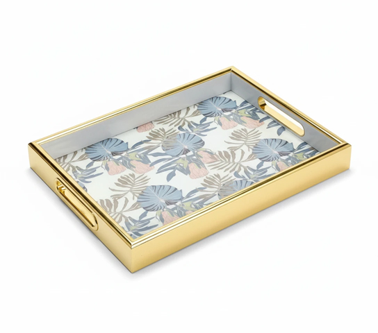 سینی دکوراتیو قاب طلایی طرح گل مات کوچک