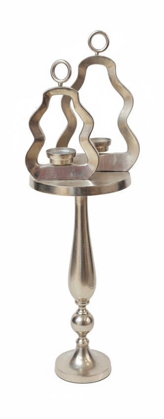 شمعدان آلومینیوم دکوراتیو مدل موج نقرهای