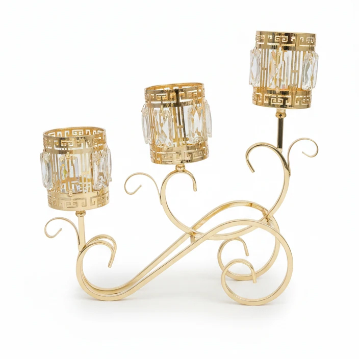 شمعدان دکوری سهشاخه طلایی کریستالی آنست .N