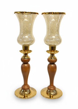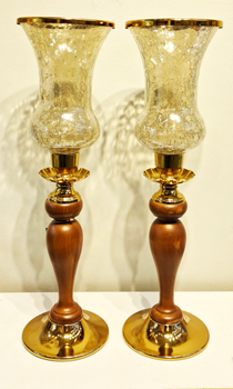 شمعدان پایه فلزی طلایی و چوبی با شیشه آبگز