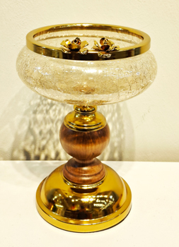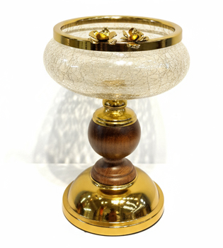 آجیل خوری پایه فلزی طلایی و چوبی با شیشه آبگز