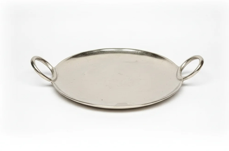 سینی آلومینیوم گرد حلقهای سیلور مانلی استور ترکیبی از طراحی کاربردی و زیبایی مینیمال است. این محصول در دو سایز 30 سانتیمتر (بزرگ) و 20 سانتیمتر (کوچک) عرضه میشود تا متناسب با نیازهای مختلف پذیرایی، از سرو شیرینی و دسر گرفته تا میوه و فینگرفود استفاده شود. جنس آلومینیوم سبک و مقاوم با روکش سیلور براق، جلوهای درخشان و مدرن به میز پذیرایی میدهد. حلقههای جانبی علاوه بر نقش تزئینی، حمل آسان و ایمن سینی را امکانپذیر کردهاند.