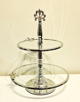 شیرینیخوری دو طبقه لیلیوم ترکیبی از ظرافت کلاسیک و طراحی مینیمال نقرهای است که بهواسطه جزئیات فلورال کوچک روی لبهها، جلوهای لطیفتر پیدا کرده است.
