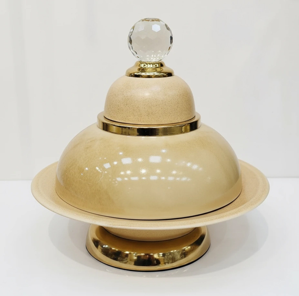 شیرینی خوری گنبدی کرم طلایی با دستگیره کریستالی