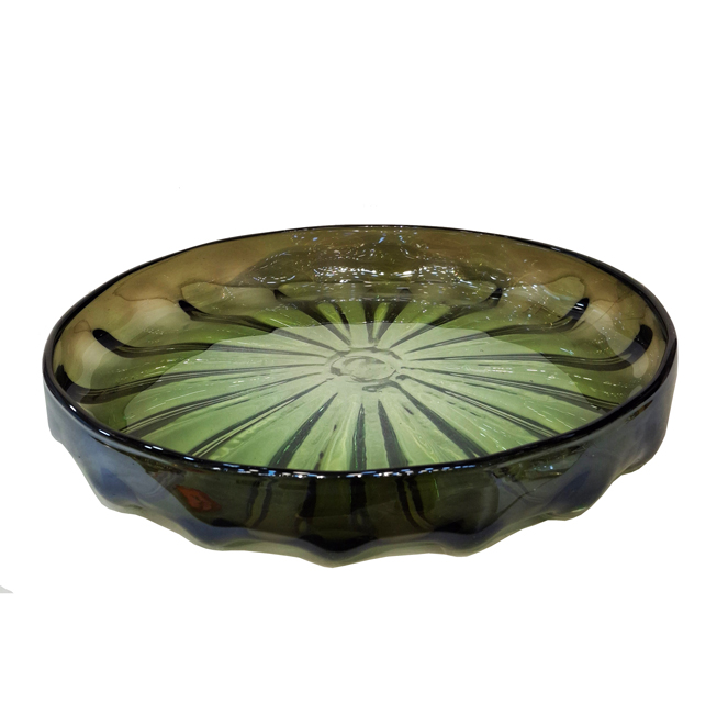 ظرف پذیرایی شیشهای سبز طرح ارگانیک قطر 28 سانتی