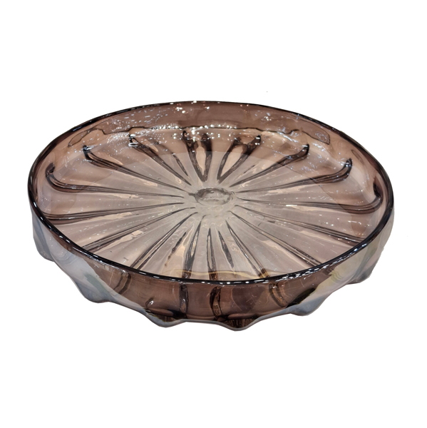 ظرف پذیرایی شیشهای صورتی دودی قطر 28 سانتی
