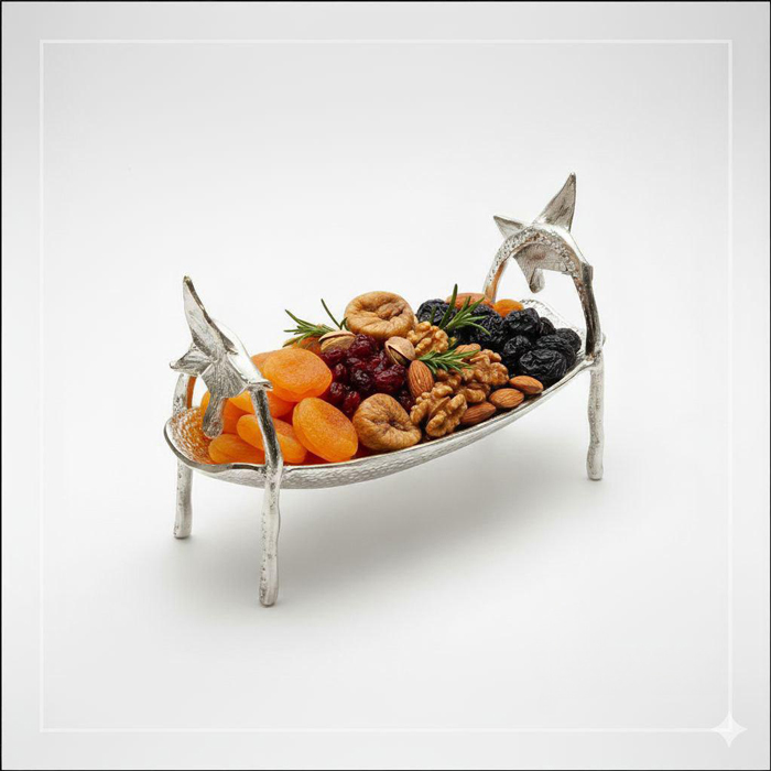 ترکیب بافت ظریف فلز و برق نقره‌ای رنگ، این ظرف را مناسب استفاده در مهمانی‌ها، سرو خشکبار، میوه‌ریز، شکلات، شیرینی و حتی به‌عنوان یک دکوری مستقل روی میز یا کنسول می‌سازد.