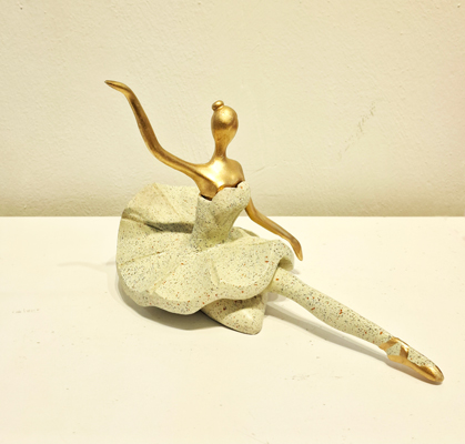 یک قطعه دکوراتیو هنری با ترکیب رنگ طلایی و بافت سنگی که ظرافت و زیبایی حرکات باله را به فضای داخلی منتقل میکند.