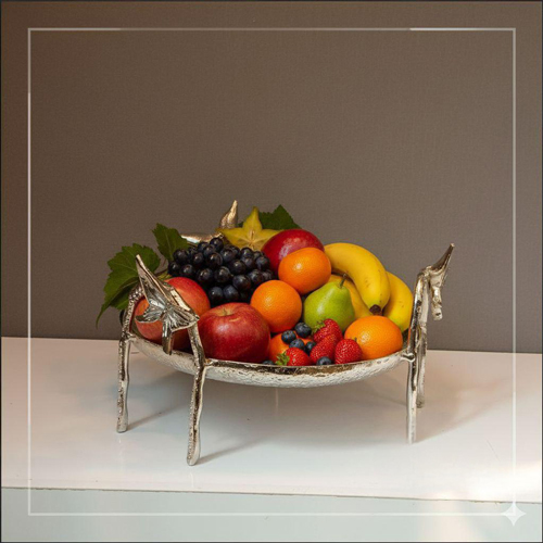 بدنهی فلزی چکشی، لبهی موجدار و درخشش فلز نقرهای، این میوهخوری را هم برای استفاده روزمرهی شیک و هم برای مهمانیهای رسمی ایدهآل میکند.