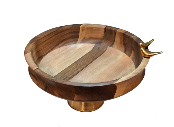 میوهخوری پایه فلزی طلایی و بدنه چوبی روشن طرح گنجشک، ترکیبی هنرمندانه از چوب طبیعی با تُن روشن و فلز طلایی صیقلی است؛ ظرفی که ظرافت طبیعت را با حس لوکس مدرن در هم آمیخته است.