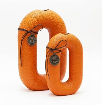 گلدان دکوراتیو نارنجی حلقهای یکی از نمونههای معاصر در طراحی لوکس دکوری است. فرم حلقهای و فضای خالی میانی، نماد تعادل در سبک Minimal Luxury است که نور و سایه را در نمای دکوری حسابشده بهنمایش میگذارد.