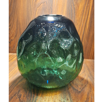 گلدان شیشهای شفاف بزرگ سبز با فرم ارگانیک و حجمپردازی آزاد، یک المان دکوراتیو شاخص برای فضاهای مدرن و لوکس است. شفافیت چشمنواز شیشه در کنار گرادینت طبیعی رنگ سبز، جلوهای زنده و هنری ایجاد میکند که با نور محیط بازی کرده و عمق بصری خاصی به فضا میدهد.