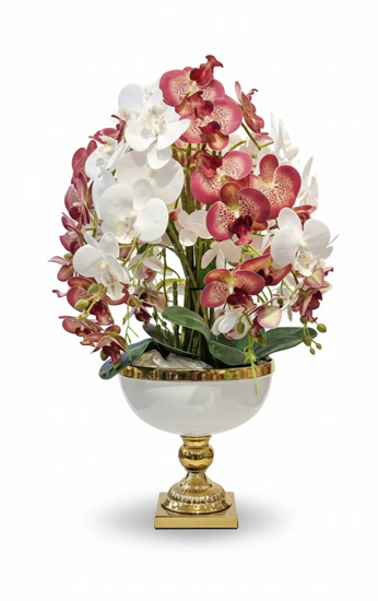 - نوع گل: ارکیده مصنوعی پریمیوم (سفید و زرشکی)